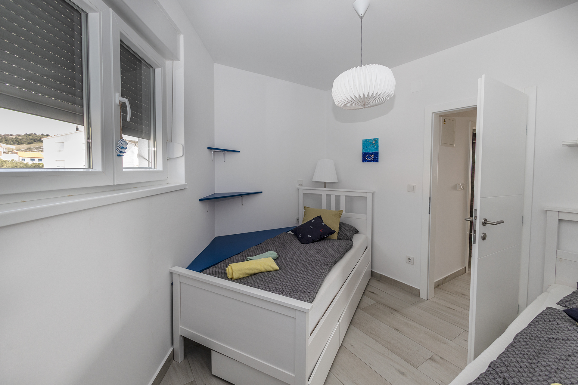Už při vstupu do Happy Home vás obklopí pocit domova. Dvoupatrový prostor plný světla, útulnosti a drobných detailů, které voní po létě. A pak ta terasa – naše srdce domu. Nově zrekonstruovaná, se záplavou světýlek, zelení a privátní vířivkou, která láká k letnímu ponoření hned po západu slunce. Nebo klidně k načerpání energie v chladnějších zimních měsících. Jen vy, bublinky, ticho večera a šum moře v dálce.