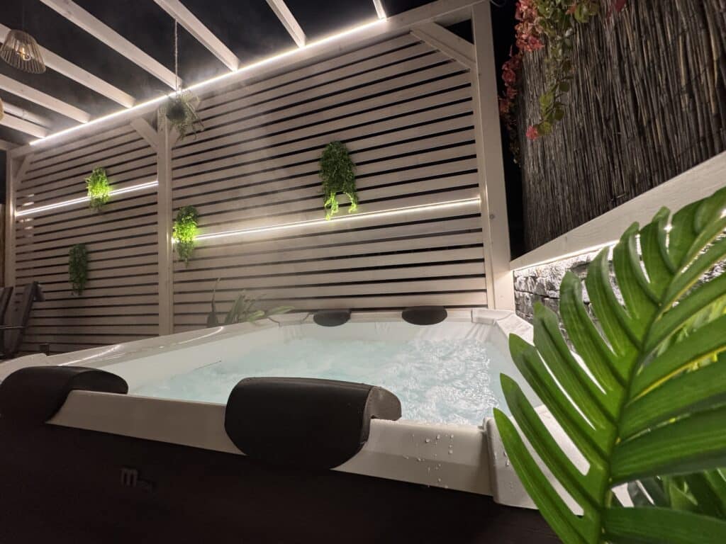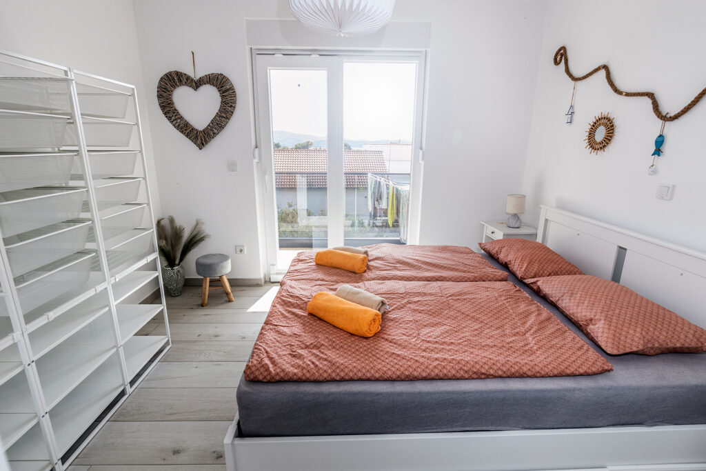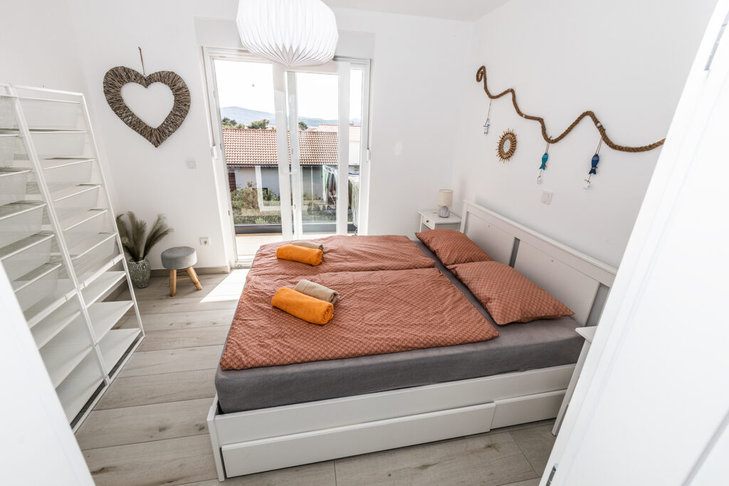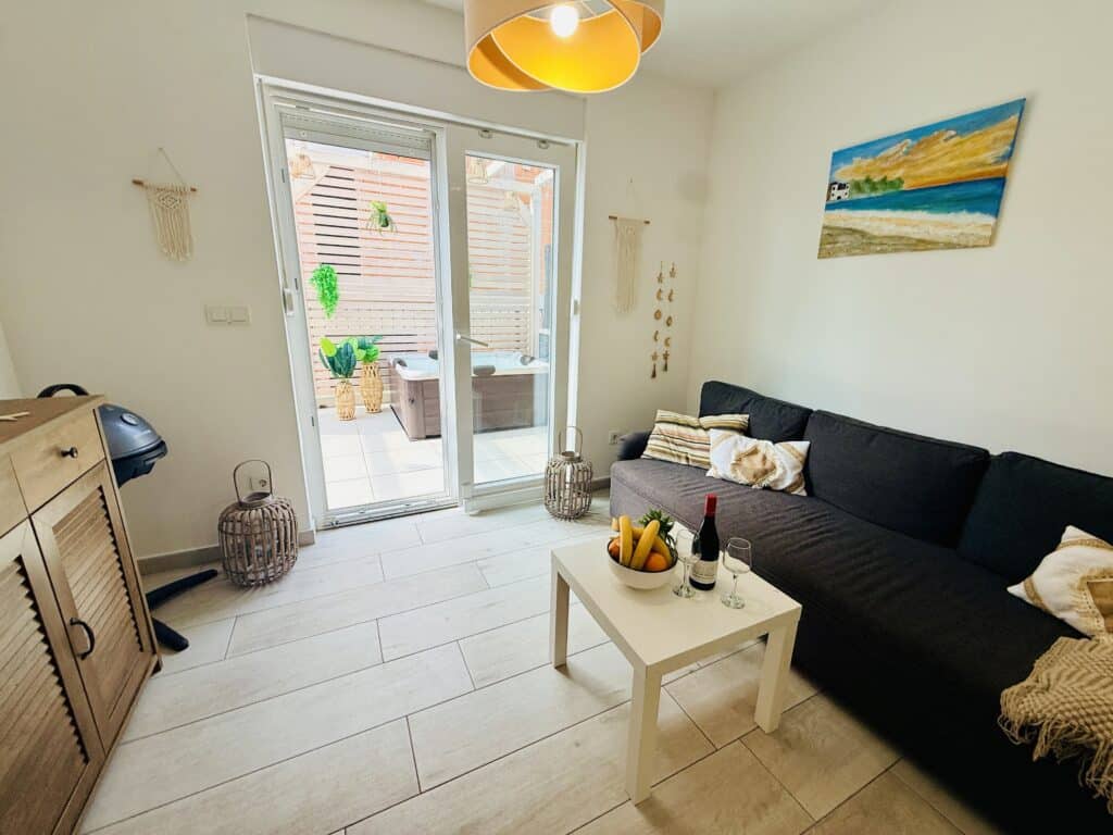 Už při vstupu do Happy Home vás obklopí pocit domova. Dvoupatrový prostor plný světla, útulnosti a drobných detailů, které voní po létě. A pak ta terasa – naše srdce domu. Nově zrekonstruovaná, se záplavou světýlek, zelení a privátní vířivkou, která láká k letnímu ponoření hned po západu slunce. Nebo klidně k načerpání energie v chladnějších zimních měsících. Jen vy, bublinky, ticho večera a šum moře v dálce.