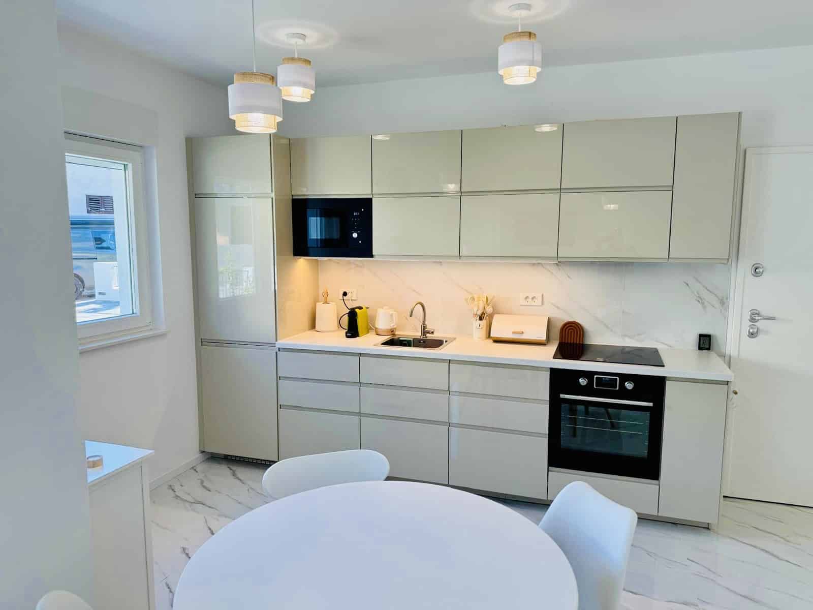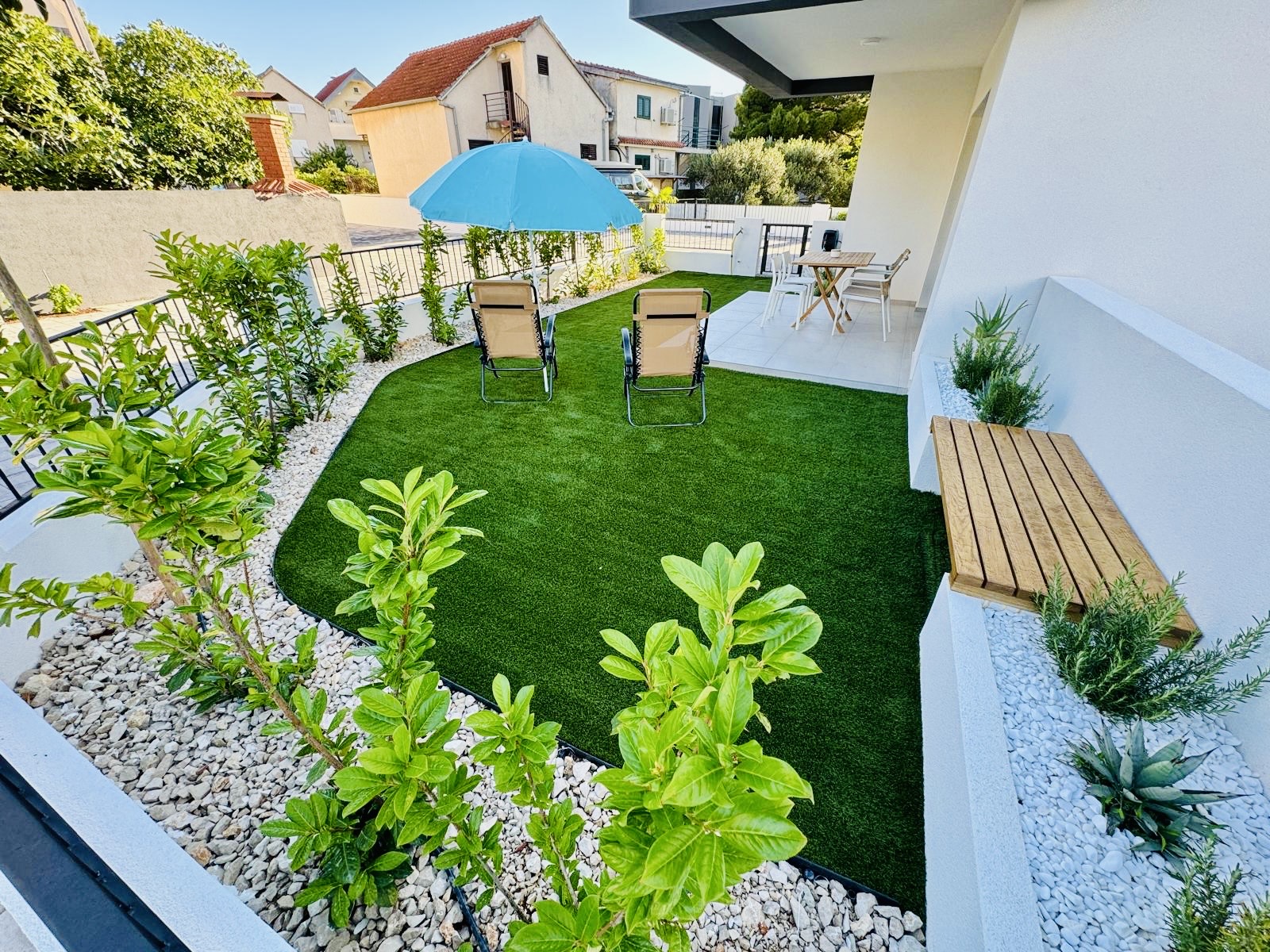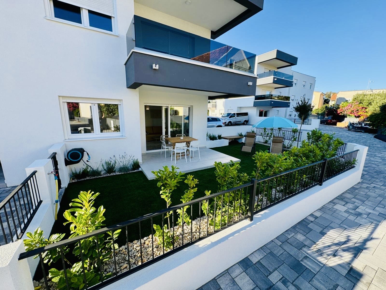 Elegante, neue Erdgeschosswohnung mit eigenem umzäunten Garten, nur 40 Meter vom Strand entfernt. Die Wohnung befindet sich in der modernen Wohnanlage Aqua Beach Residence, in zweiter Reihe zum Meer. Sie liegt ruhig und sicher und ist ideal für Familien mit Kindern. Das Stadtzentrum ist in zwei Minuten zu Fuß am Meer entlang erreichbar.