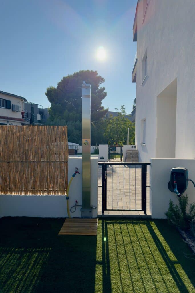 - Garten: JA, Privater, umzäunter Bereich mit Außendusche