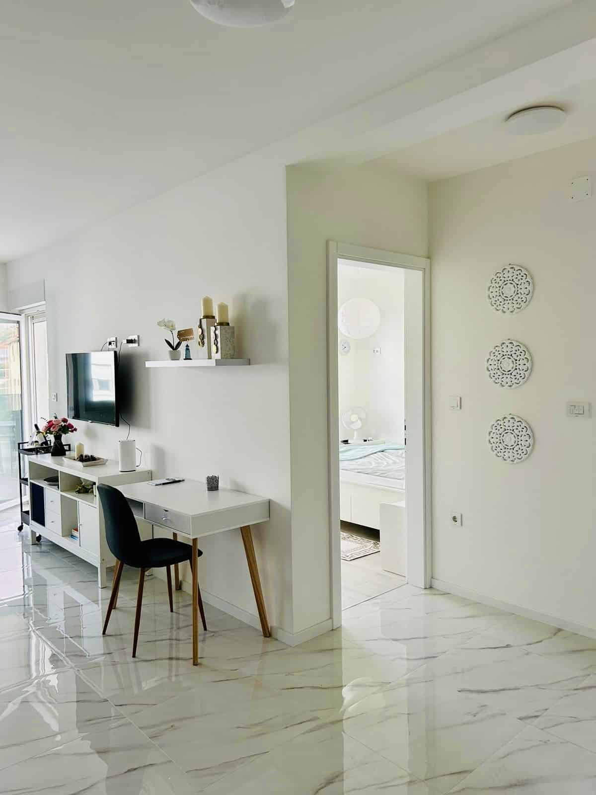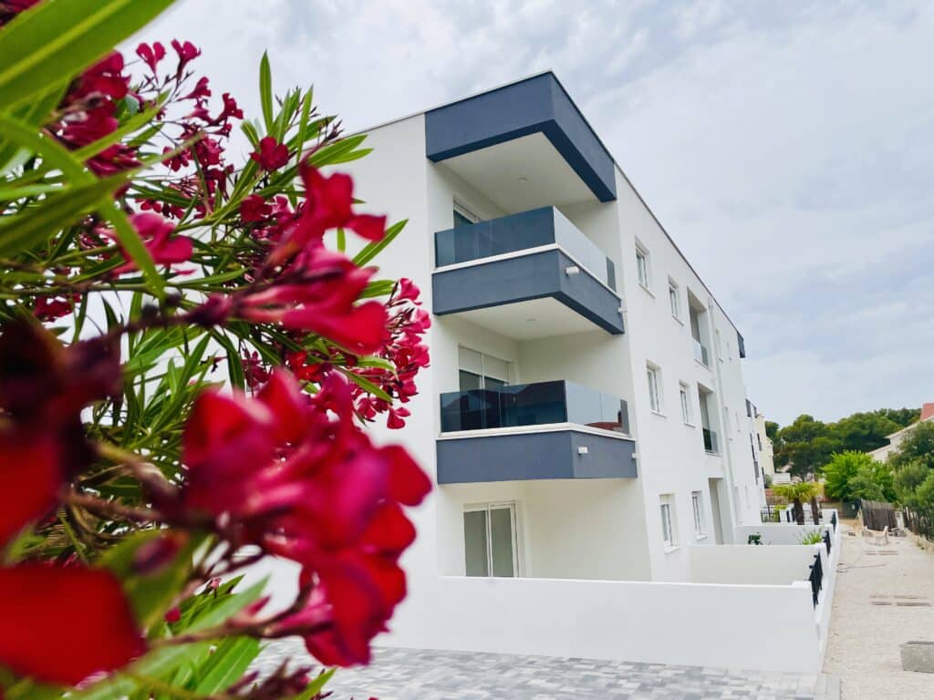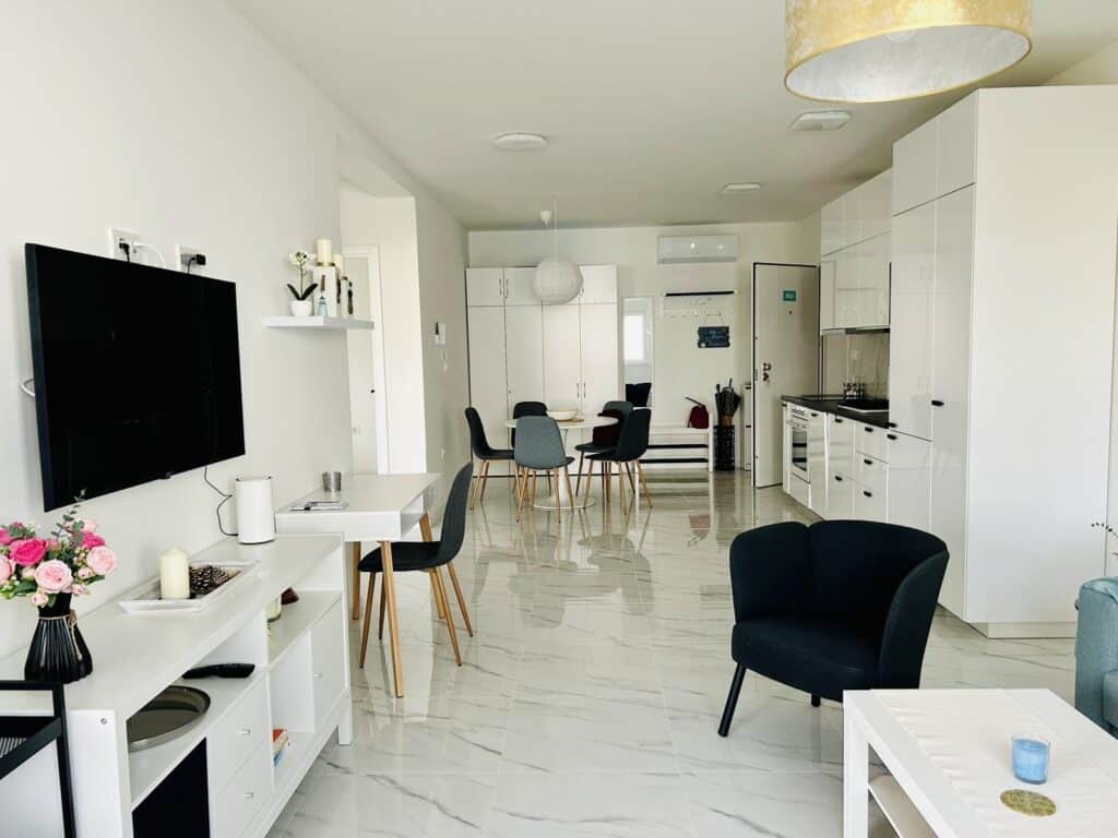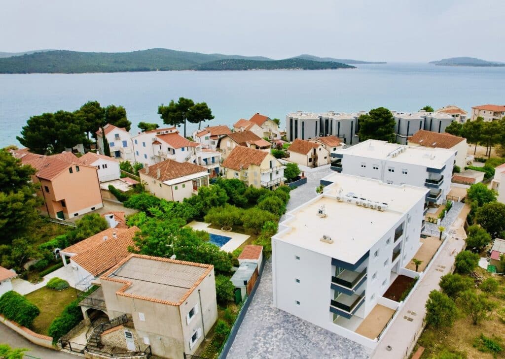 Zcela nový apartmán s terasou a výhledem na moře jen 40 metrů od pláže. Apartmán se nachází v moderním projektu Aqua Beach Residence ve 2. řadě od moře. Jedná se o klidné a bezpečné místo, ideální pro rodiny s dětmi. Do centra městečka přitom dojdete za dvě minuty podél moře.
