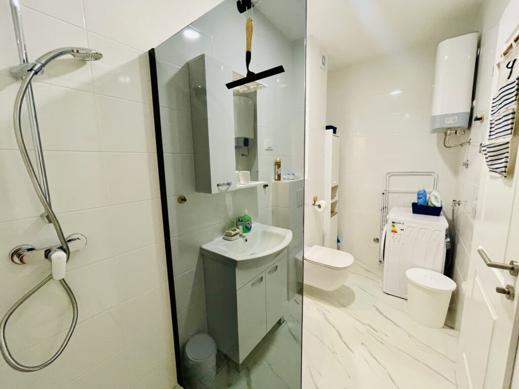 Zcela nový přízemní apartmán s vlastní oplocenou zahrádkou jen 50 metrů od pláže. Apartmán se nachází v moderním projektu Aqua Beach Residence ve 2. řadě od moře. Jedná se o klidné a bezpečné místo, ideální pro rodiny s dětmi. Do centra městečka přitom dojdete za dvě minuty podél moře.