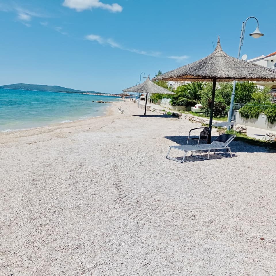 Ze zahrady máte přímý vstup na pláž – pár kroků a jste u moře. Kolem vede promenáda s vyhlášenou restaurací Pomalo, pizzerií Ginger, palačinkárnou a malým obchůdkem, všechno doslova za rohem.