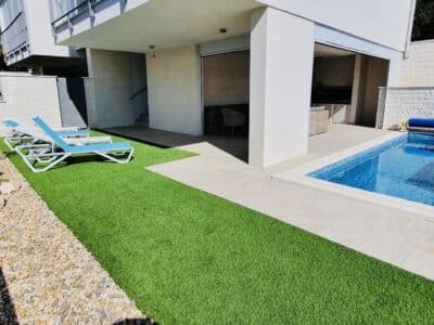 Luxusní soukromá vila s vyhřívaným bazénem a zahradou vhodná pro dvě rodiny jen 80 metrů od pláže. Vila se nachází na klidném místě v rezidenční čtvrti na okraji Žaboriče a nabízí maximální pohodlí a soukromí.